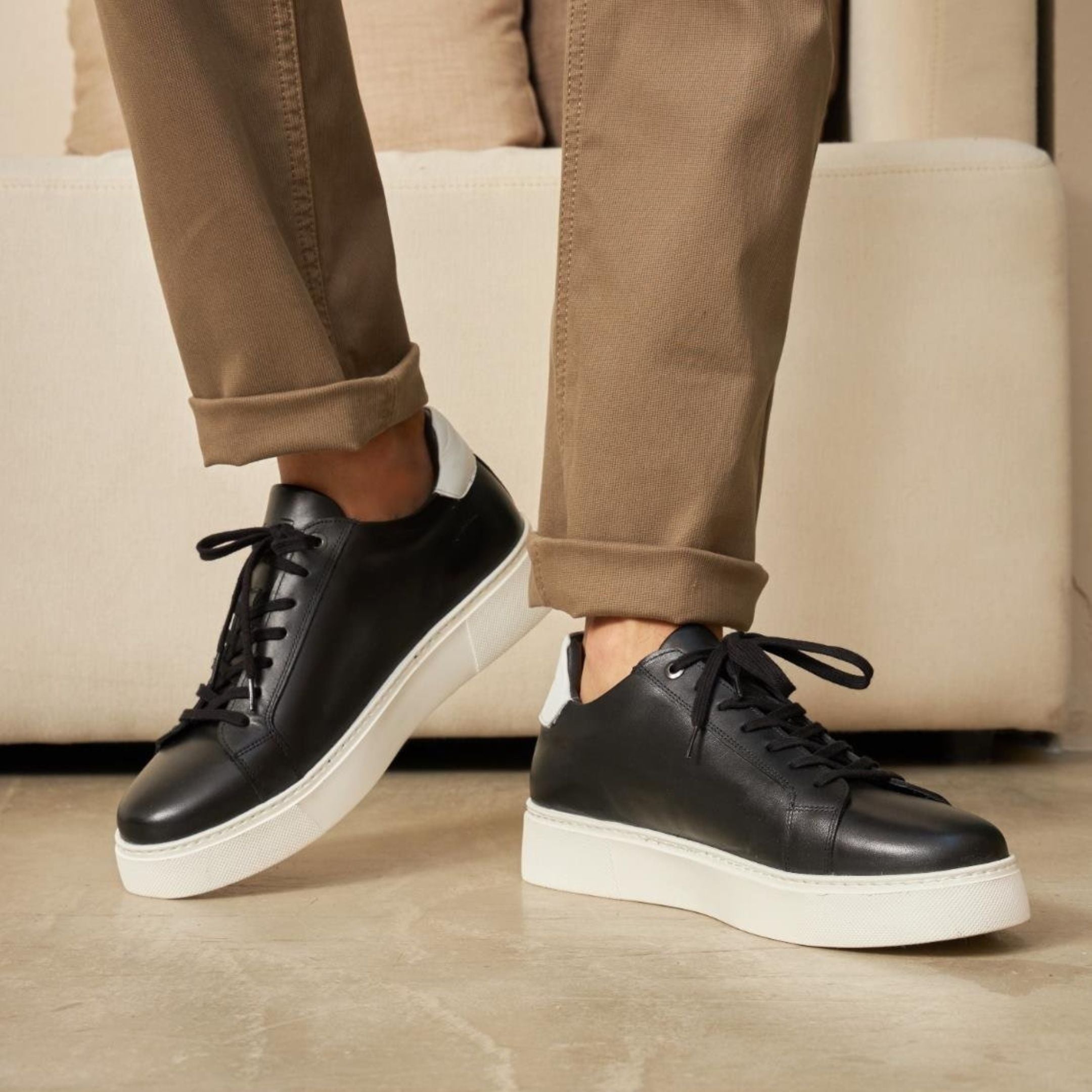 Madasat black & white leather casual shoes - 810 |